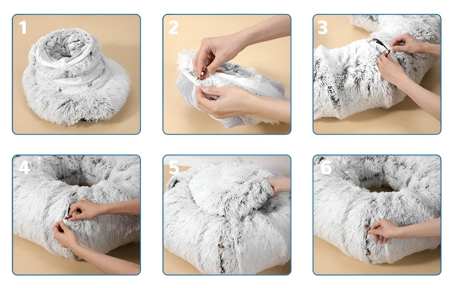 The Cat Tunnel bed has a long tunnel and a detachable super comfortable bed, with a bottom that is non-slip and foldable, making it easy to carry and store.